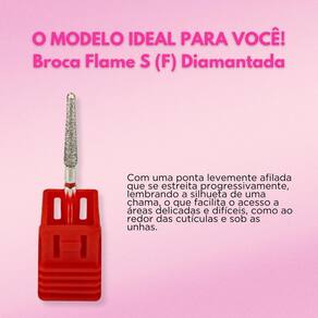 A broca de unhas Flame S F Diamantada é uma ferramenta utilizada em procedimentos de manicure e pedicure, especialmente em alongamentos de unhas e tratamentos de cutículas. Possui um formato de chama flame , com uma ponta levemente afilada que se estreita progressivamente, lembrando a silhueta de uma chama, o que facilita o acesso a áreas delicadas e difíceis, como ao redor das cutículas e sob as unhas. A broca diamantada é torna abrasiva, permitindo um desgaste preciso e eficiente, sem causar muito atrito ou desconforto. Ela é Utilizada para polir, limpar, remover calosidades e cutículas, e realizar acabamentos em detalhes nas unhas de forma segura. Garante precisão em áreas difíceis, sendo indispensável para profissionais.