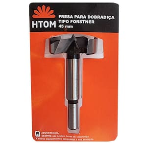 Broca Forstner 45mm para Furadeira Madeira Dobradiça CanecoBroca Forstner para dobradiça em aço HSS, ideal para instalar dobradiças e outros encaixes em madeiras duras, aglomerados no segmento de móveis e carpintaria. - Marca: HTOM- Referência: HTOM-42198- Diâmetro de furação: 45mm- Diâmetro da haste: 10mm- Comprimento total: 90mm- Ideal para instalar dobradiças e outros encaixes em madeiras duras, aglomerados no segmento de móveis e carpintaria- Material: Aço Rápido HSS- Utilização em Furadeiras, Parafusadeiras, Furadeiras de Coluna, Furadeiras de Bancada.- Cria furos limpos, precisos e impecáveis em madeira, sem esforço e com resultados profissionais- Alta capacidade de remoção de resíduos, que mantém a broca limpa e proporciona cortes mais rápidos- Produto de grande durabilidade- O design dos dentes oferece uma alta precisão e um enorme rendimento- Ponta centradora que permite um início preciso do furo- Medida marcada na broca para reconhecê-la facilmente- Garantia: 90 dias contra defeito de fabricação