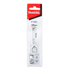 Broca Para Vidro 8x58mm Makita D-78455 Cabeça com afiação aprimorada e metal duro superior de maior dureza, aumentando a eficiência e durabilidade da broca Haste fresada com 3 faces planas para melhor fixação no mandril Embalagem feita com material biodegradável - Características: Medida: 8 x 58mm - Itens Inclusos: 1- Broca Para Vidro 8x58mm Makita D-78455 - Garantia: Fabricante Marca: Makita Modelo: D-78455 Código de Barra: 0197050351487 Imagens meramente ilustrativas. Todas as informações divulgadas são de responsabilidade do Fabricante/Fornecedor