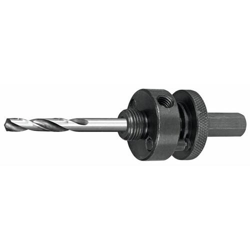 A Broca Piloto para Serra Copo com Suporte 3/8 polegadas Tramontina é uma ferramenta que auxilia você na perfuração em aço. Projetada para ser utilizada juntamente com serras copo e brocas piloto, ela é produzida com a qualidade do aço HSS temperado. Acompanha suporte e possui encaixe de 3/8 polegadas e rosca de 1/2 polegada. Orientações Broca em aço HSS temperada.Suporte em aço carbono.Encaixe Hexagonal 3/8".Rosca 1/2" - 20G.Para serras copo de 14 a 30 mm.As ferramentas são submetidas a testes de aplicação prática para garantir sua resistência mecânica em uso intenso.Utilizada juntamente com serras copo e brocas piloto em trabalhos de perfuração em aço. As ferramentas são produzidas e testadasconforme normas específicas. Observações Use óculos, luvas e outros equipamentos de proteção de acordo com a tarefa a ser executada.Mantenha ferramentas de corte longe do alcance de crianças.Mantenha o fio de corte protegido, pois ele pode ferir o usuário.Não exceda a velocidade máxima indicada para cada tamanho de serra copo.Lubrifique a ferramenta sempre que possível durante o corte.Armazene em local limpo e seco. Características Gerais EAN13 7891114104820 DUN14 17891114104827 NCM 8207.50.11 Peso Líquido 0,0800 kg. Peso Bruto 0,0800 kg. Metragem 0,000627 m³. Dimensões Embalagem (Compr. X Larg. X Alt.) 190x 165x 20 mm. Dimensões Produto (Compr. X Larg. X Alt.) 94x 17x 17 mm. Dimensão Extra A 9,5 mm. Dimensão Extra B 44,0 mm. Dimensão Extra C 19,0 mm. Dimensão Extra D 94,0 mm. Dimensão Extra E 17,0 mm.