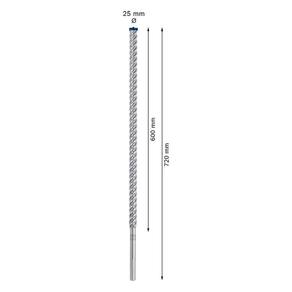 A broca para concreto Bosch SDS Max-8X oferece 50% mais durabilidade até nas aplicações mais duras. Sua ponta maciça em carbeto de tungstênio com 4 arestas de corte garantem desempenho e resistência excepcionais em concreto armado. A broca é extremamente resistente a tensões e ao calor graças à tecnologia de solda por fusão entre o corpo de aço e a ponta maciça de carbeto de tungstênio. Além disso, a ponta centradora com angulo de afiação em 90 proporciona inícios estáveis ao perfurar. Para obter resultados precisos, a broca para concreto Bosch SDS Max-8X possui uma marca de indicação de desgaste para controlar se o diâmetro do furo ainda está dentro da tolerância normativa. Para garantir uma perfuração de precisão, como em aplicações como ancoragem, a broca possui a marca de teste da Comissão da Associação de Brocas para Alvenaria PGM, que garante a conformidade com tolerâncias apertadas, perfuração exata e fixações firmes. É compatível com martelo com encaixe SDS Max de todas as marcas.- Dura até 3 vezes mais que a broca SDS max-4 da Bosch- Ponta de broca excepcionalmente durável com Carbide Technology da Bosch.- Ponta centradora com ângulo de 90 proporciona uma perfuração estável do início ao fim- Ponta maciça em metal duro com 4 arestas de corte garantem desempenho e resistência excepcionais em concreto armadoItens inclusos: 01 unidade - Broca Bosch EXPERT SDS Max-8X com ponta maciça em carbeto de tungstênio e 4 arestas de corte Diâmetro25 x 600 x 720 mmEspecificações técnicas:- Diâmetro: 25 mm- Comprimento útil: 600mm- Comprimento total: 720mm