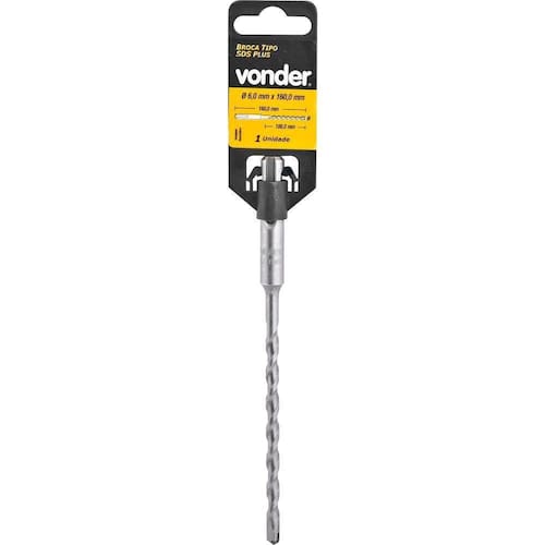 Diâmetro da broca (mm): 6,00 mm Comprimento total da broca (mm): 160,0 mm Tipo de canal da broca: Helicoidal Tipo de haste da broca: Encaixe tipo SDS PLUS Número de cortes da broca : 2 cortes Produto: Broca