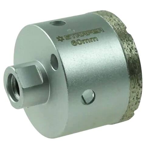 Especificações Técnicas: Tipo: Serra copo contínua diamantada Diâmetro: 60 mm Material do corpo: Aço carbono Tipo de lâmina: Contínua diamantada Rosca: M14 Compatibilidade: Esmerilhadeira (ou furadeira com adaptador Starfer) Embalagem: Blister duplo Marca: Starfer Ref.: 13006679