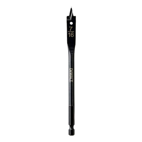 Broca DEWALT, pá, 7/16 polegadas x 6 polegadas (DW1573) - Haste pesada tratada termicamente para proteção contra dobras e quebras - Ranhura de corte otimizada para remoção rápida de lascas - Cantos chanfrados para maior durabilidade contra impactos de pregos - Orifício de pá para facilitar a tração do fio e o armazenamento da broca - A haste esférica de 1/4” permite trocas rápidas de brocas.