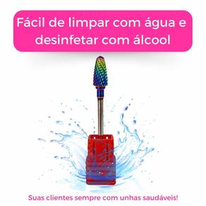 Broca de corte fino (F) com uma ponta em formato de bala e acabamento colorido. Permite um trabalho detalhado e preciso, especialmente em áreas menores e de difícil acesso, como as dobras laterais das unhas. Indicada principalmente para a remoção de materiais de alongamento e o acabamento final de unhas de gel, acrílico e polygel. Seu design e acabamento colorido foram projetados para alcançar áreas mais difíceis com precisão. A granulação fina ajuda a suavizar a superfície, proporcionando um acabamento detalhado, ideal para nivelamento e refinamento.