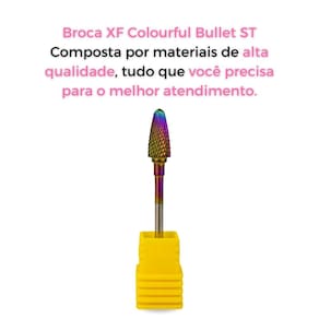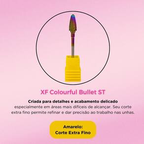 Características Principais: - Modelo: XF Colourful Bullet ST; - Ideal para acabamentos; - Corte Extra fino; - Material de alta resistência; - Indispensável para manciures.