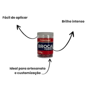 Brocal Vermelho 3,5gr Fabricante - Outros Materiais Escolares e Esc: Promabond O Brocal Metálico 3,5g é um produto indispensável para quem deseja adicionar um toque de brilho e sofisticação aos seus trabalhos manuais. Com partículas metálicas ultrarrefletivas, ele proporciona um acabamento cintilante e vibrante, ideal para artesanato, decoração, customização de roupas e acessórios, além de diversas aplicações criativas. Seja para destacar um detalhe especial ou para cobrir superfícies inteiras com um efeito luminoso deslumbrante, o brocal metálico é fácil de aplicar e garante um resultado . Principais Benefícios: - Brilho Intenso e Duradouro: As partículas metálicas refletem a luz de forma excepcional, proporcionando um acabamento sofisticado e reluzente. - Versatilidade de Aplicação: Pode ser utilizado em papelaria, scrapbooking, customização de roupas, decoração de festas, unhas artísticas, maquiagem artística com fixador adequado , confecção de fantasias e muito mais. - Fixação Segura: Pode ser aplicado com cola branca, cola para artesanato, verniz, gel fixador ou outros produtos adequados ao material utilizado. - Embalagem Compacta e Econômica: Contém 3,5g de brocal metálico, quantidade ideal para diversos tipos de projetos sem desperdício. Disponível em Diversas Cores: Escolha a tonalidade que melhor se adapta ao seu trabalho e crie efeitos personalizados e únicos. Fácil de Usar: Basta espalhar sobre a superfície desejada e aguardar a secagem do fixador para um resultado impecável. Como Usar o Brocal Metálico - Prepare a Superfície: Aplique uma fina camada de cola ou verniz no local onde deseja fixar o brocal. - Aplique o Brocal: Espalhe o pó metálico de forma uniforme sobre a cola ainda úmida. - Aguarde a Secagem: Deixe secar completamente para garantir uma fixação perfeita. - Remova o Excesso: Se necessário, utilize um pincel seco para retirar partículas soltas e obter um acabamento mais limpo. IMAGENS MERAMENTE ILUSTRATIVAS Marca: Não Informado