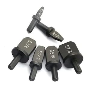 Brocas Alargador Expansor Cano Tubo De Cobre Alumínio 6 Pcs O Kit Alargador / Expansor é ideal para fazer alargar tubo de cobre rígido e flexível e também tubos de alumínio para fazer conexões de tubulações de ar condicionado e muito mais. Robusto, fácil de usar e longa vida útil. Possui 6 tamanhos para te ajudar nos mais diversos tipos de trabalho, dando padronização ao serviço. Pode ser em furadeira manual. Ferramenta ideal para instaladores de ar condicionado. Detalhes: Material: Aço Quantidade: 6 Peças Tamanhos: 7/8 polegadas 22.2mm 3/4 polegadas 19mm 5/8 polegadas 15.9mm 1/2 polegadas 12.7mm 3/8 polegadas 9.5mm 1/4 polegadas 6.3mm Marca: Não Informado