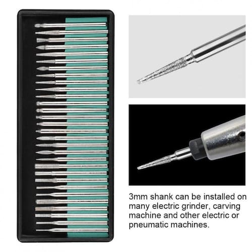 30 Uds 3mm brocas de punta de diamante ad Dremel cessories vástago G dFeito de materiais premium, é de alta dureza e longa durabilidade para processamento fino. Excelente para o trabalho de detalhe fino, como moagem, escultura, retoque e acabamento.30pcs cabeça de moagem diferente, econômica e prática. Amplamente utilizado em cerâmica, vidro, pedra, liga de carboneto, jade e assim por diante.3mm haste pode ser instalado em muitos moedor eletrônico, máquina de escultura e outras máquinas elétricas ou pneumáticas. Características: 1. Feito de materiais premium, é de alta dureza e longa durabilidade para processamento fino. 2. haste de 3mm pode ser instalada em muitos g der eletrônicos, esculpindo m hine e ot r elétrico ou pneumático m hines. 3. 30pcs anúncio g ding diferente, econômico e pr tical. 4. Amplamente na cerâmica, vidro, pedra, liga de caide, jade e assim por diante. 5. Excelente para o trabalho de detalhes finos, tais como g ding, escultura, retoque e acabamento. Especificação: Material: Silício Ca ide, Galvanoplastia de diamante, Metal Cor: Mostrado como imagem Shank Diâmetro: 3mm / 0.12in Comprimento total: Aprox. 4.5cm / 1.77in P kage Peso: Aprox. 111g / 3.9oz P kage lista: 30 * G ding anúncios: 1. Devido a t diferença entre monitores e efeito de luz, t imagens podem não refletir t tual cor de t item. 2. Por favor, permita um pequeno erro devido à medição manual. Obrigado pela sua compreensão.