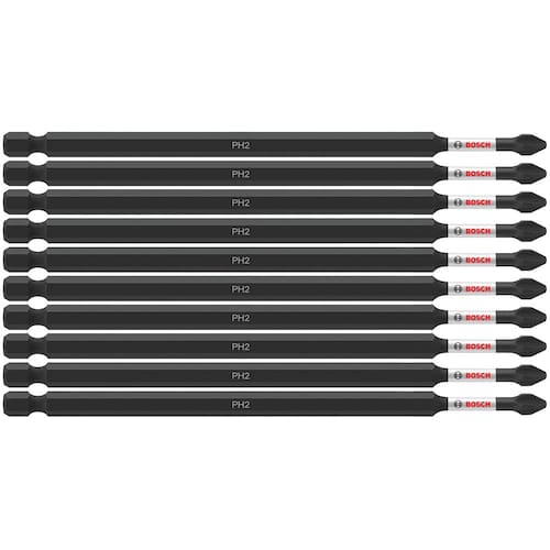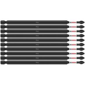 BOSCH ITPH26B Pacote com 10 brocas Phillips nº 2 para parafusamento resistente a impactos - Vida útil 10 vezes acima das brocas de impacto padrão - A zona de torção Xtended ajuda a absorver alto torque de novos acionadores de impacto - Pontas projetadas com precisão para um ajuste mais apertado e menos CAM - Fabricação com tratamento térmico para uma broca mais forte - Manga de alta visibilidade com marcações gravadas a laser para conveniência do usuário