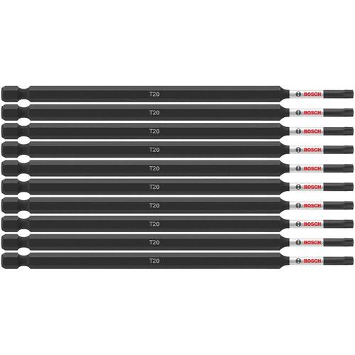 BOSCH ITT206B Pacote com 10 brocas de 6 polegadas Torx #20 resistente a impacto - 10 vezes de vida útil sobre brocas de impacto padrão - Zona de torção Xtended ajuda a absorver alto torque de novas chaves de impacto - Pontas projetadas com precisão para um ajuste mais apertado e menos CAM - Fabricação tratada termicamente para pontas mais fortes - Manga de alta visibilidade com marcações gravadas a laser para conveniência do usuário