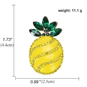 Material: liga Tamanho: 2,5 x 4,4 cm Peso: 11,1 g Quantidade: você obterá todas as peças em quantidade igual à primeira foto principal. ShowPineapple Design — Apresenta um corpo de abacaxi esmaltado amarelo brilhante com linhas onduladas de strass e folhas de cristal verde para uma aparência fresca e elegante. Alloy Build — Feito de liga de qualidade com esmalte polido e strass cintilantes, garantindo brilho e durabilidade duradouros. Estilo — Funciona perfeitamente como alfinetes de blusa, broche, crachá de lapela ou detalhes decorativos em cachecóis, casacos, jaquetas e bolsas. E confortável — Medindo 2,5 x 4,4 cm e pesando apenas 11,1 g, este broche é fácil de usar sem puxar ou danificar os tecidos. Acessório para mulheres — ideal para adicionar elegância a roupas casuais, trajes de negócios ou roupas noturnas, tornando cada estilo mais refinado.