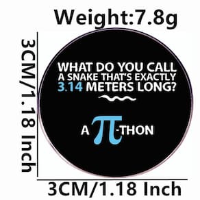 Material: Liga Tamanho: 3 x 3 cm Peso: 7,8 g Quantidade: você receberá todas as peças em quantidade igual à primeira foto principal Mostra Humorous Math Design — Apresenta o enigma espirituoso “Como você chama uma cobra com exatamente 3,14 metros de comprimento? Um “Pi-thon” com um símbolo criativo de Pi. Material de liga durável — Feito de liga premium com acabamento esmaltado suave, garantindo resistência ao desbotamento e brilho duradouro. Acessório versátil — funciona como alfinetes de blusa, broche ou crachá de lapela para casacos, camisas, mochilas ou chapéus. Compacto e leve — Tamanho 3x3 cm e peso 7,8 g, projetado para ser confortável para uso diário sem danificar os tecidos. Perfeito para entusiastas da matemática — Um emblema estiloso para professores, estudantes e qualquer pessoa que goste de humor matemático e acessórios inspirados em nerds.