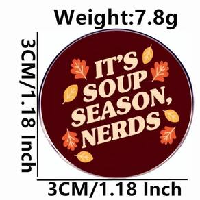 Material: liga Tamanho: 3 x 3 cm Peso: 7,8 g Quantidade: você receberá todas as peças em quantidade igual à primeira foto principal. Mostre o design de citações humorísticas apresenta a frase “It's Soup Season Nerds” com folhas de outono, tornando-a um acessório divertido e sazonal. Material de liga durável Feito de liga de qualidade com superfície lisa de esmalte, garantindo um desgaste duradouro sem desbotar. Acessório versátil, perfeito como alfinetes de blusa, broche, alfinete de lapela ou crachá decorativo para jaquetas, bolsas e chapéus. Vibrações da temporada de outono O padrão das folhas de outono e os tons quentes destacam o charme sazonal, ótimo para roupas e encontros de outono. Unissex e moderno. Adequado para homens e mulheres, oferecendo uma declaração de estilo peculiar para estudantes, professores e amantes de sopas.