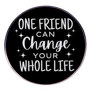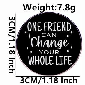 Material: liga Tamanho: 3 x 3 cm Peso: 7,8 g Quantidade: você receberá todas as peças em quantidade igual à primeira foto principal Mostrar design inspirador: apresenta um broche redondo de esmalte preto com a frase edificante “Um amigo pode mudar sua vida inteira”, simbolizando o poder da amizade. Material de liga durável: feito de liga de alta qualidade com revestimento de esmalte, garantindo letras vivas, sensação de leveza e durabilidade duradoura. Compacto e leve: com um tamanho de 3x3 cm e peso de 7,8 g, este broche é confortável de usar diariamente e fácil de transportar sem volume. Acessório versátil: funciona como alfinete de blusa, alfinete de lapela ou crachá para jaquetas, mochilas, chapéus ou roupas casuais, adequado para uso diário ou ocasiões especiais. Estilo unissex: projetado para homens e mulheres, este broche esmaltado adiciona charme e positividade, perfeito para estudantes, amantes da moda ou aqueles que valorizam a amizade.
