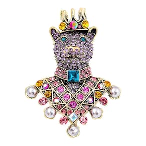 Material: Liga Tamanho: 4,2 x 5,7 cm Peso: 19 g Quantidade: você receberá todas as peças em quantidade igual à primeira foto principal. ShowBear Design — Apresenta um urso coroado com detalhes requintados, simbolizando nobreza e exclusividade na moda. Strass — Adornados com cristais vibrantes em tons de roxo, rosa, azul e dourado, criando uma aparência luxuosa deslumbrante. Enfeites — Decorados com imitações de pérolas nas bordas, realçando sua elegância vintage inspirada no palácio. Artesanato em liga — Feito de liga premium com revestimento fino, resistente e confortável para uso diário ou ocasiões especiais. Estilo — Perfeito como alfinetes de blusa, broche, alfinete de lapela ou crachá, ideal para jaquetas, cachecóis, vestidos ou roupas de festa.