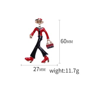 Material: liga. Tamanho: 2,7 x 6 cm Peso: 11,7 g Quantidade: você receberá todas as peças em quantidade igual à primeira foto principal. ShowLady Design — Apresenta uma figura de mulher ambulante vestindo uma blusa vermelha, calça preta, salto alto e uma bolsa combinando, apresentando um estilo retrô moderno. Liga com acabamento esmaltado — Fabricada em liga de alta qualidade e revestida com esmalte vibrante, oferecendo um acabamento brilhante e durabilidade duradoura. Cores — O forte contraste entre vermelho e preto adiciona um toque moderno e vintage, tornando-o um acessório de destaque para uso diário ou ocasiões especiais. Alfinete de blusa e alfinete de lapela — Perfeitos para prender em blusas, jaquetas, cachecóis, vestidos ou bolsas, servindo tanto como decoração quanto como um toque estiloso. E confortável — Com um peso de 11,7 g, este broche é fácil de usar sem desconforto, adequado para mulheres que gostam de detalhes criativos de moda.