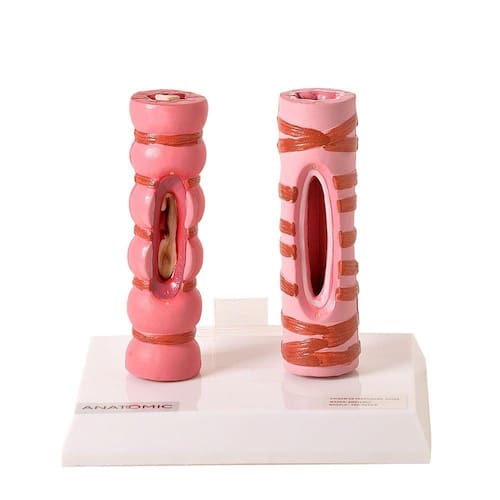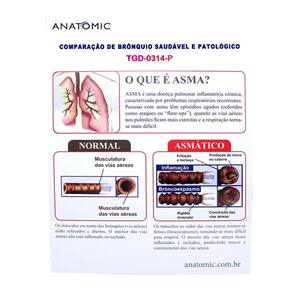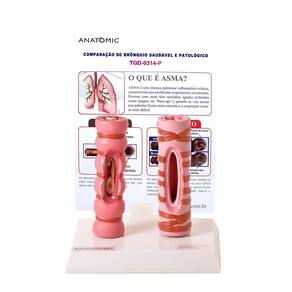 Modelo anatômico, exibe comparação entre brônquio saudável e brônquio acometido por asma, com inchaço, inflamação e secreção. Confeccionado em resina plástica emborrachada, montado sobre base com placa explicativa. Composto por: 1- Brônquio saudável 1- Brônquio com Asma O modelo TGD-0314-P permite: Estudo da fisiologia do brônquio e suas estruturas (sistema respiratório) Acompanha: Manual do usuário Base Placa Explicativa Embalagem: caixa de papelão Comprimento x Largura x Altura: 25 cm x 21 cm x 33 cm Peso: 2,134 kg Garantia: 1 ano