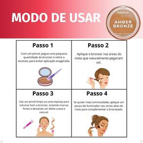 O Amber Bronze é o bronzer compacto que vai te proporcionar aquele efeito bronzeado natural e luminoso, sua fórmula leve e fácil de esfumar proporciona um acabamento suave, deixando a pele com um brilho saudável e natural, perfeito para o dia a dia ou para um visual de verão.