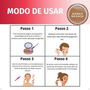 O Amber Bronze é o bronzer compacto que vai te proporcionar aquele efeito bronzeado natural e luminoso, sua fórmula leve e fácil de esfumar proporciona um acabamento suave, deixando a pele com um brilho saudável e natural, perfeito para o dia a dia ou para um visual de verão.