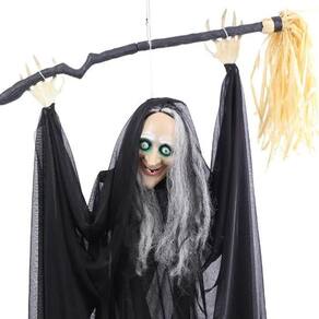 Bruxa Thelma C/Luz+Som+Mov 1,15m Halloween Tamanho: 1,15m Altura x 60cm Largura Composição: Tecido, Plástico, Fio de Ferro, Isopor e Pvc Movimento: Sobe e Desce, Olhos Azuis Brilhates e Com Um Som Horripilante E lá vamos nós assuste seu amigos com essa bruxa horripilante Marca: Cromus Halloween Marca: Cromus Halloween