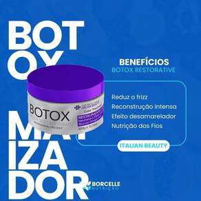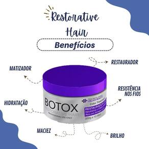 O Botox Restorative Hair contém em sua fórmula Violeta que age nos fios neutralizando o amarelado indesejado, intensificando e deixando a cor mais vibrante.