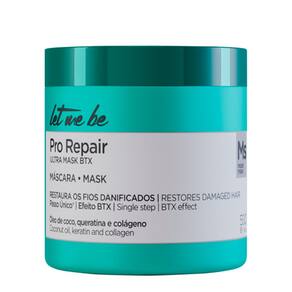 O Btx Pro Repair Ultra Mask - Passo Único Let Me Be | 500g possui formulação rica em óleo de coco, queratina, colágeno e polímero condicionante de alta performance, que sob ativação térmica restaura os fios extremamente danificados.