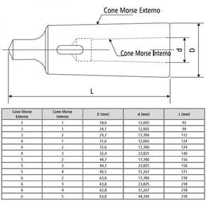 MEDIDAS DA BUCHA DE REDUÇÃO CONE MORSE- Marca: ROCAST;