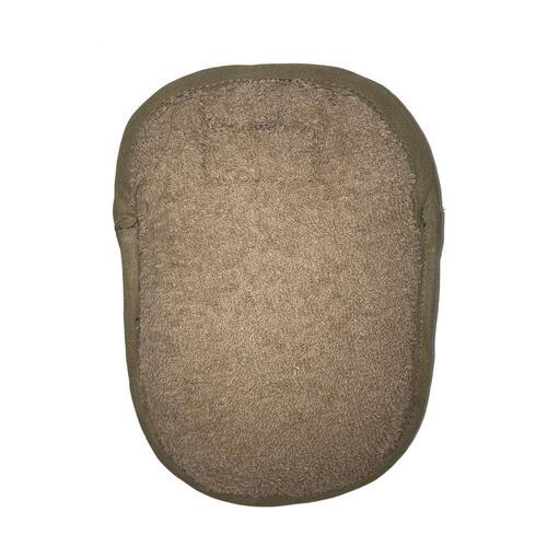Bucha luva atoalhado bege escuro, indicada para o banho oferece uma esfoliação suave e gentil para a pele. Sua textura é incrivelmente macia e combinada com sabonete líquido ou em barra intensifica a produção de espuma.