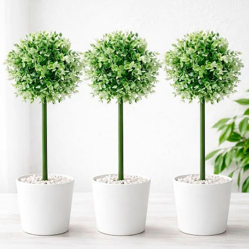 3x Buchinhos Branco Verde Planta Artificial De 80cm