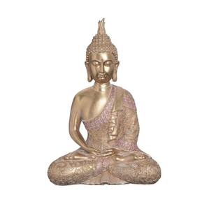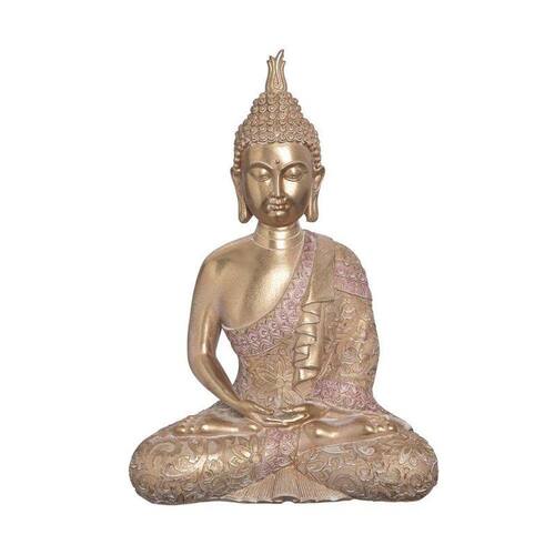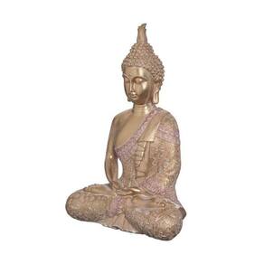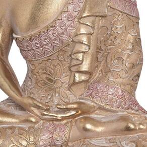 O Buda Decor Nepal tem 35 cm e é produzido em resina com detalhes em dourado e rosa. Associado a paz, calma e espiritualidade, o buda em conjunto com outros elementos como velas e incensos transforma aquele cantinho especial para a sua prática de meditação.