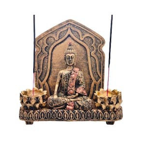 Este kit é uma jornada visual pela espiritualidade, proporcionando uma harmonia única entre beleza e introspecção. Explore a expressão artística e a conexão interior com a combinação do Aparador e Incensário com Painel e o Buda Hindu Tibetano Meditando.