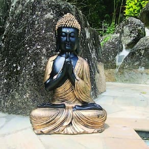 Buda Hindu Rezando XG2 05512 Manxs, uma Estátua Extra Grande, sofisticada, colorida e que vai dar Vida à Sua Casa Estátua de Buda Hindu grande e requintada de 46cm na cor preta para destaque da roupa color, em resina de alta qualidade. Esta Estátua Buda Meditando é perfeita para alcançar a harmonia e o equilíbrio na decoração dos ambientes almejando transmitir tranquilidade e paz interior aos seus ocupantes. Trada-se de uma adição maravilhosa para sua casa. Tamanho em cm: 22 x 32 x 46 cm Dicas: - Se você é budista, provavelmente já tem um altar; apenas certifique-se de colocar este altar em sua casa onde a meditação e a reflexão possam ser praticadas de modo calmo e devidamente respeitoso. - Coloque esta estátua no nível dos olhos ou mais alto. - Evite colocá-lo próximo a tomadas elétricas ou equipamentos com peças móveis e motores. Este tipo de atividade perturba a energia ao redor. - Coloque na frente da porta de entrada, numa mesa alta, isso garante que o Buda interaja com a energia Chi, que entra na sua casa. A estátua vai neutralizar qualquer Chi negativo e transformá-lo em positivo. - Também pode colocar na sala de estar, em direção à porta da frente. - Colocar esta Estátua na mesa de estudos e trabalho é muito auspicioso, já que o Buda evoca Boas Energias para cumprir objetivos acadêmicos e projetos. - Colocar esta Estátua Buda na recepção do seu escritório traz muita prosperidade para os seus negócios. É um incrível e adorável presente, serve para decorar e harmonizar a energia da sua casa Venha Cuidar-se e Decorar Na Mana Om Você recebe seu Buda Chinês Menino Com Castiçal E Boas Energias Gratidão, Namastê, Tudo de Ohm