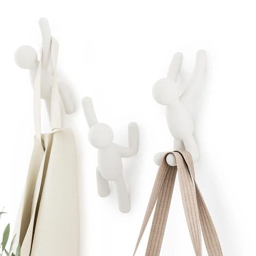 Este conjunto de 3 ganchos de parede apresenta o popular personagem Buddy da Umbra ?escalando as paredes? em várias posições.