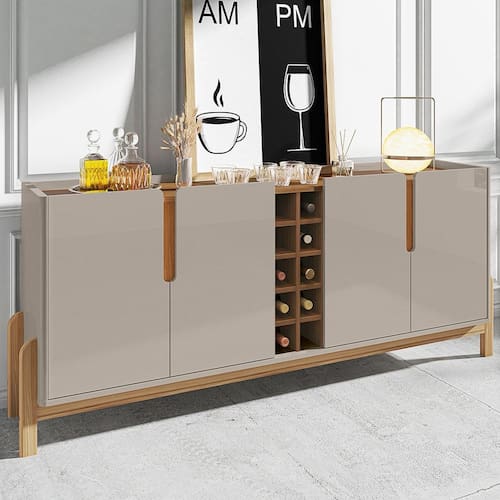 Ideal para organizar melhor sua sala de jantar ou de estar, o Buffet Lizz! . Possui 4 portas e duas prateleiras internas, seus compartimentos internos são ideais para armazenar e organizar diversos tipos de objetos pessoais, além de seu aparelho de jantar e demais itens que sejam necessários. Lindo, robusto e versátil, garante um espaço moderno e organizado. Base e laterais de MDF com cantos arredondados. Estrutura dos pés de madeira maciça. E ainda possui 10 adegas para armazenar suas bebidas com mais facilidade.