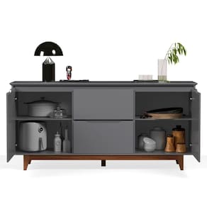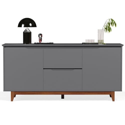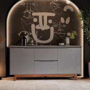 Buffet 2 Portas Flow Cinza Com design moderno e linhas elegantes, o Buffet 2 Portas é a escolha ideal para quem busca um móvel sofisticado, funcional e com visual clean.Perfeito para compor salas de jantar, estar ou halls de entrada, o modelo une estética contemporânea e praticidade no uso diá dos seus diferenciais é a régua dupla face, um aplique superior que pode ser montado com dois acabamentos diferentes, permitindo adaptar o visual do móvel conforme o estilo do ém disso, o buffet conta com tampo e portas em MDF usinados, com acabamento refinado que valoriza os detalhes, enquanto a estrutura dos pés em madeira proporciona firmeza, durabilidade e um toque natural.Internamente, oferece amplo espaço para organização, ideal para armazenar louças, utensílios, objetos decorativos ou itens diversos do dia a ões:Altura: 84 cmLargura: 163 cmProfundidade: 40 cmObservações:- Régua dupla face inclusa: escolha o visual que mais combina com seu ambiente - Sem puxadores externos, com design clean e sofisticado - Tampo e portas em MDF usinados, com acabamento de alto padrão - Estrutura dos pés em madeira, com excelente resistência - Amplo espaço interno para organização eficiente Ideal para salas de jantar, estar, hall ou ambientes sociais