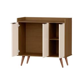 Contém uma prateleira interno e um amplo espaço para organizar elementos diários de diversos tamanhos, conta também com um tampo espaçoso que pode ser utilizado apra acomodar os objetos decorativos.