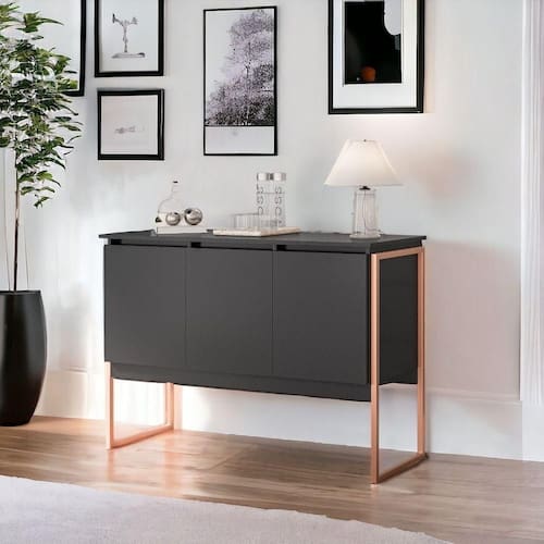 ALTURA DO PRODUTO (CM): 82 | COMNTO DO PRODUTO (CM): 38 | DESCRIÇÃO DO TAMANHO: 82x120x38 cm | ESTILO: Industrial | INSTRUÇÕES/CUIDADOS: Limpar com pano macio e seco, não utilizar produtos abrasivos | LARGURA DO PRODUTO (CM): 120 | MATERIAL PRINCIPAL: MDP | PESO DO PRODUTO (KG): 27 | PRODUTO PRECISA DE MONTAGEM?: Sim, Sugerimos a contratação de um montador para a montagem do produto. Não nos responsabilizamos por causadas no ato da montagem | QUANTIDADE DE PORTAS: 3 Cor: Preto Cobre