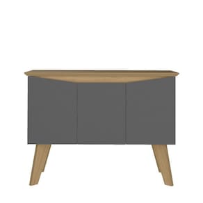 Características: Tampo de MDF 25mm com borda invertida 3 Portas com puxador chanfrado Prateleiras internas com 03 ajustes de altura Pés em estilo retrô de MDF 25mm Acabamento pintura UV texturizada