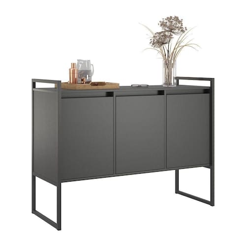 Buffet 3 Portas Rouxe Preto Onix O Buffet veio para compor sua sala ou cozinha com seu charme industrial para a renovação do seu ambiente bonito e moderno. BUFFET em MDP PERFEX 15mm com acabamento Bordas em ABS,