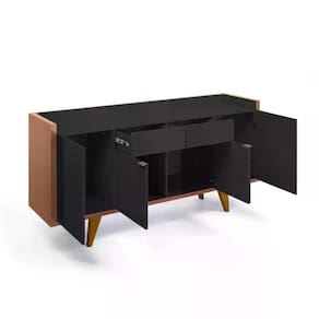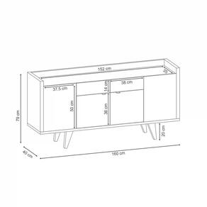 ESPECIFICAÇÕES TÉCNICAS: -Material: MDP/MDF; - Acabamento: Pintura Uv; - Número de Portas: 4 Portas; - Número de Gavetas: 2 Gavetas; - Número de Nicho: 4 Nichos; - Possui Prateleiras? Não; - Possui Pés? Sim; - Pés Removíveis? Sim; - Material dos Pés: Madeira Maciça; - Possui Puxadores? Sim; - Material dos Puxadores: Alumínio; - Produto precisa de montagem? Sim; - Garantia: 3 Meses Contra defeito de fabricação; - Medidas: LarguraxProfundidadexAltura; 160x40x79cm;