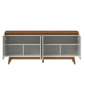 Produzido em MDF com acabamento em Primer e Verniz UV.4 Portas com puxador em cava e dobradiças de alta qualidade e resistência.Pés em madeira maciça Tauari com acabamento em Verniz PU e sapatas de PVC, para proteção. Indicado para ambientes internos.Peso Suportado: 30 kg.Altura nicho superior: 20,5 cm.Largura nicho superior: 86,8 cm.Altura nichos inferiores: 25 cm.Largura nichos inferiores: 42,6 cm.Altura dos pés: 18 cm. Marca: Não Informado