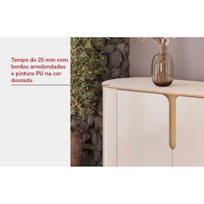 reforçada com pés metálicos cilíndricos também na cor dourada, criando uma composição harmônica