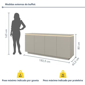 Acrescenta na decoração para sala de jantar? Sim, é um item que destaca em qualquer ambiente. Acabamento da Gaveta: Pintura UV Acabamento da Porta: Pintura UV Acabamento da Prateleira: Pintura UV Ambiente Principal: Sala de Jantar codigo_ean: 7900288123015 Complexidade da Montagem: Alta: deve ser montado por um montador especializado Cor: Off White Cor do Produto: Off White Escala de Brilho: Semi-Brilho Escala de Brilho da Gaveta: Semi-Fosco Escala de Brilho da Porta: Semi-Brilho Escala de Brilho da Prateleira: Semi-Fosco Gaveta com Chave: Não Itens Inclusos: 1 Buffet, Manual de Montagem e Kit Ferragens Manual de Montagem e Instalação: https://product-hub-prd.madeiramadeira.com.br/982930/documents/39363253-6479-407a-846f-20803a4df81a28591417321744818712473.pdf Marca: Mavaular Material da Gaveta: MDF Material da Porta: MDF Material da Prateleira: MDF Material Principal: MDF Necessita Montagem: Sim Origem do Produto: Nacional Peso: 68,9 kg Peso Máximo por Gaveta: 5 kg Peso Máximo por Prateleira: 10 kg Possui Adega: Não Possui Espelho: Não Possui Nicho: Não Possui Pés: Não Possui Portas: 04 Recomendações de Uso, Manutenção e Limpeza: Utilizar para limpeza apenas um pano úmido. Sapatas Niveladoras: Não Sistema de Montagem: Parafusos Suporta Até (kg): 45 kg Tipo de Corrediça da Gaveta: Metálica Telescópica Tipo de Dobradiça/Corrediça da Porta: Metálica Tipo de Porta: Bater Tipo de Puxador da Gaveta: Embutido Tipo de Puxador da Porta: Embutido