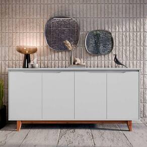 Buffet 4 Portas Flow Branco Com linhas modernas e acabamento sofisticado, o Buffet 04 Portas Flow é a escolha ideal para quem busca funcionalidade e estilo em um único móvel. Perfeito para compor salas de jantar, estar ou ambientes sociais, ele oferece amplo espaço de armazenamento com um visual clean e contemporâ peça conta com estrutura firme com pés em madeira, garantindo resistência, durabilidade e um toque natural ao ambiente. Seu tampo e portas em MDF usinado apresentam um acabamento de alto padrão, evidenciando o cuidado nos modelo aposta na elegância do minimalismo ao dispensar puxadores externos, mantendo uma estética contínua e sofisticada. Internamente, oferece amplo espaço para armazenar louças, utensílios, objetos decorativos ou itens diversos, mantendo tudo sempre bem dos grandes diferenciais da linha é a régua dupla face, um detalhe superior que permite escolher entre dois acabamentos distintos, adaptando o visual do móvel ao estilo da sua decoraçãões:Altura: 84 cmLargura: 163 cmProfundidade: 40 cmObservações:- Régua dupla face inclusa: escolha o acabamento que combina com seu ambiente- Sem puxadores externos: visual limpo e elegante- Tampo e portas em MDF usinado com acabamento refinado- Estrutura dos pés em madeira para maior firmeza e sofisticação- Amplo espaço interno para organização eficiente de objetos e utensílios- Ideal para salas de jantar, estar ou ambientes de convivência