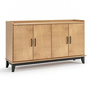 Produzido em madeira maciça de pinus de reflorestamento, o móvel oferece alta resistência e durabilidade, sendo uma excelente opção para o uso diário. Suas quatro portas com dobradiças de pressão garantem abertura prática e fechamento suave, enquanto os puxadores metálicos acrescentam um toque contemporâneo ao design.