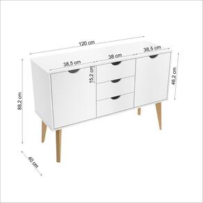 O Buffet / Aparador Retalho possui um ótimo armazenamento interno para utensílios e itens variados, além de seu visual que mescla o moderno com pés retrô. Ideal para compor salas, tanto de jantar como de estar, também pode ser utilizado como aparador, graças à sua altura pensada para servir diversos tipos de projeto, tanto residenciais quanto comerciais. Acabamento da Gaveta: BP Acabamento da Porta: BP Acabamento da Prateleira: BP Acabamento dos Pés: Pintura Altura dos Pés: 42 cm Ambiente Principal: Sala de Jantar Complexidade da Montagem: Média: pode ser montado por mais de uma pessoa e/ou necessite de maior conhecimento para montagem Cor: Madeira Cor do Produto: Madeira Escala de Brilho: Fosco Escala de Brilho da Gaveta: Fosco Escala de Brilho da Porta: Fosco Escala de Brilho da Prateleira: Fosco Gaveta com Chave: Não Informações Complementares: O “BP” é um tipo de revestimento tratado com tecnologias específicas para dar maior resistência ao móvel. Esse é um dos diferenciais dos nossos produtos. Itens Inclusos: 1 Aparador, Kit Ferragens e Manual de Montagem Manual de Montagem e Instalação: https://product-hub-prd.madeiramadeira.com.br/650127/documents/d96663ed-51b6-4e73-b512-f8f84cc8cd1b14705965fk503retalhobuffet.pdf Material da Gaveta: MDP Material da Porta: MDP Material da Prateleira: MDP Material dos Pés: MDP Material Principal: MDP Necessita Montagem: Sim Origem do Produto: Nacional Peso: 37,62 kg Peso Máximo por Gaveta: 3 kg Peso Máximo por Prateleira: 3 kg Possui Adega: Não Possui Bandeja: Não Possui Possui Espelho: Não Possui Nicho: Não Possui Pés: 04 Possui Portas: 02 Possui Rodízio: Não Possui Vidro: Não Recomendações de Uso, Manutenção e Limpeza: Para a limpeza utilize um pano macio umedecido com água e sabão neutro, seguido de pano seco. Não utilize produtos químicos ou abrasivos para limpeza, pois estes danificam o revestimento do móvel. Sapatas Niveladoras: Não Sistema de Montagem: Minifix, Parafusos e Cavilhas Suporta Até (kg): 19 kg Tipo de Corrediça da Gaveta: Metálica Simples Tipo de Dobradiça/Corrediça da Porta: Metálica Tipo de Porta: Bater Tipo de Puxador da Gaveta: Embutido Tipo de Puxador da Porta: Embutido