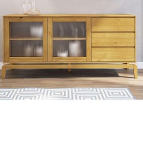 Com Design moderno e sofisticado, o Buffet Seiva é uma excelente proposta para quem busca por um móvel funcional e cheio de personalidade para valorizar o ambiente de estar ou jantar. Com linhas retas e encaixes evidentes, o produto se destaca pela sua estrutura leve e fluida, o que dá a sensação de flutuabilidade, além do destaque para o vidro canelado que está super em alta e que confere um produto contemporâneo e cheio de estilo.