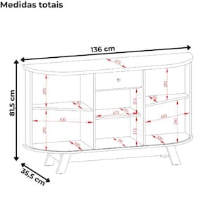 O Buffet Aparador Monza combina traços curvos, detalhes vazados e estilo retrô para transformar sua decoração com leveza e sofisticação.