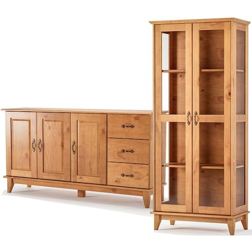 Característica do Buffet Aparador: - Madeira de Pinus de Reflorestamento; - 100% Maciço; - Tampo Maciço de 28mm; - Corrediça Telescópica; - Dobradiça de Pressão; - Pés com sapatas; - Acabamento com Verniz Fosco; - Não acompanha itens de decoração ou quaisquer objetos fora o móvel na imagem; - Montagem por conta do comprador; Dimensões da Cristaleira Bella: - Altura: 187.6 cm - Largura: 81.5 cm - Profundidade: 41.5 cm
